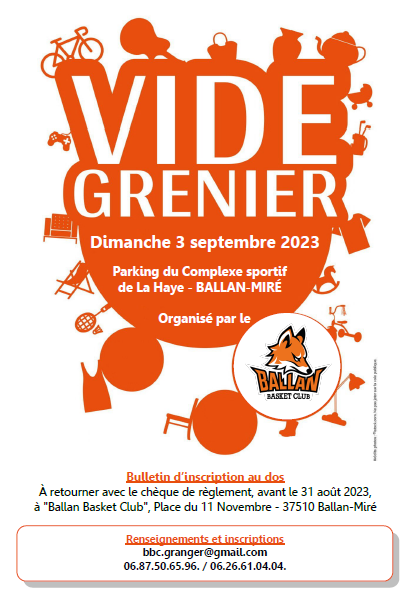 En septembre, le vide greniers du club est de retour. Il aura lieu le dimanche 3 septembre sur le parking du complexe sportif de la Haye de Ballan-Miré